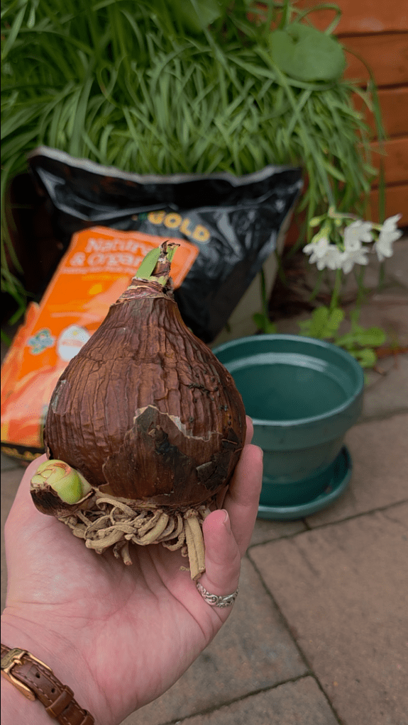 Don’t choose a huge pot. Amaryllis actually likes to be a little snug. In nature, it often grows in dry, rocky areas—so think “tight and well-drained,” not “big and soggy.”